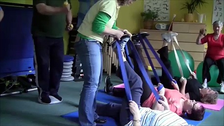 Der Rehabilitationssport findet in der Gruppe statt und soll die Leistungsfähigkeit, die Ausdauer und die Belastbarkeit des Klienten verbessern.